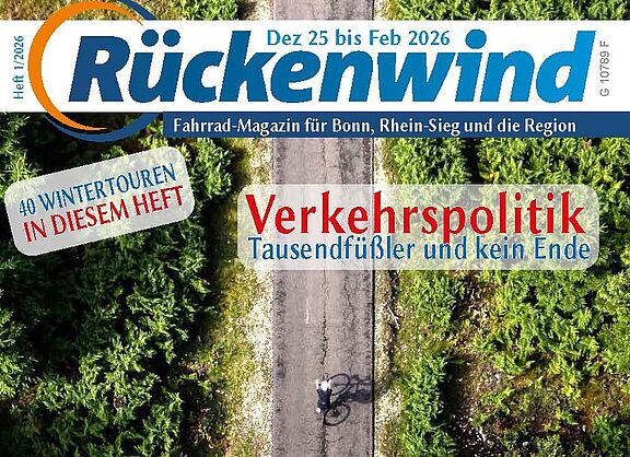 Der Rückenwind ist das Fahrradmagazin für Bonn, Rhein-Sieg und die Region. Er informiert über unser reichhaltiges Tourenangebot, ADFC-Veranstaltungen und -Aktionen, Radreisen und unsere verkehrspolitischen Aktivitäten.