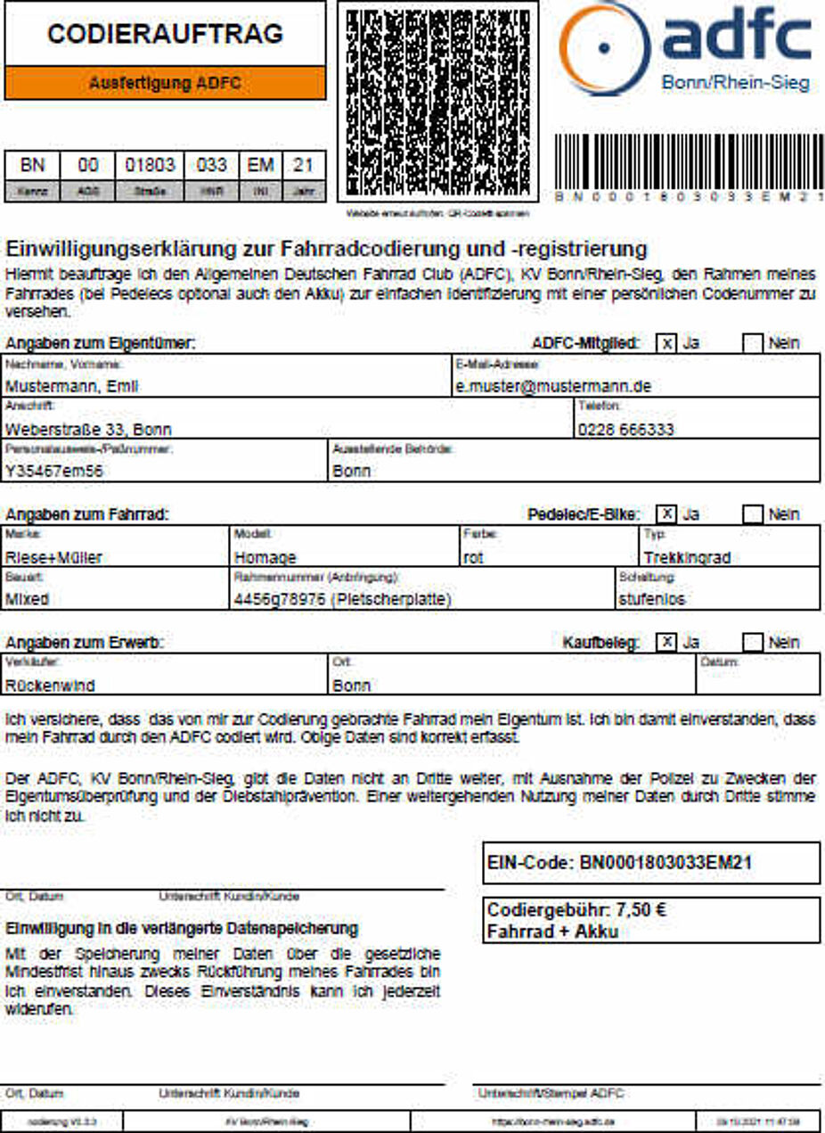 So sieht ein EIN-Code für Bonn aus © Herbert Dauben ADFC Bonn